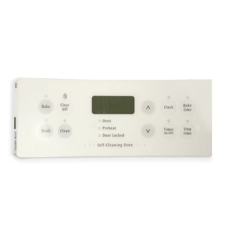 Frigidaire 554298 Control Board Overlay Clock White for FDB221RFR3 Model