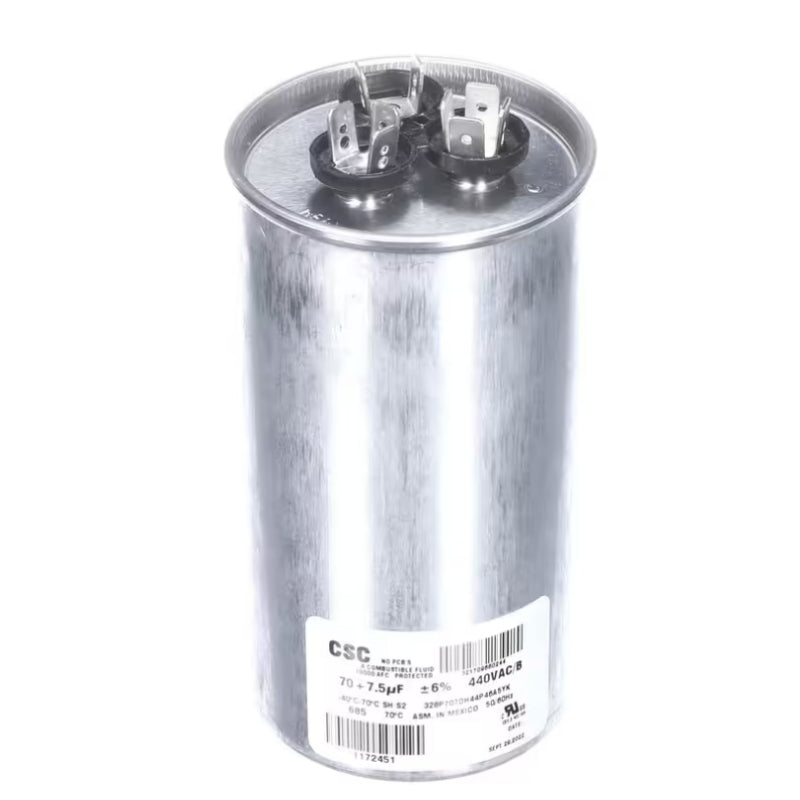 York 328P707DH44P46A5YK Capacitor Run Dual 440V 70+7.5MFD Round This sale transaction is for one York 328P707DH44P46A5YK Capacitor Run Dual 440V 70+7.5MFD Round, included exactly what is pictured. TERMS OF SALE:...